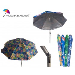 Color: estampados surtidos Tamaño: 200CM Tela: poliester N°varillas: 8 Secciones: 3 Mango: Antiviento: Estructara: metal Varillas: metal Und. caja: 12