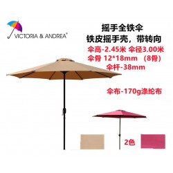 sombrilla de jardin 2 colores alto 2.45m largo 2.7m radio 12*18mm 6k palo 42mm tela 170g poliester